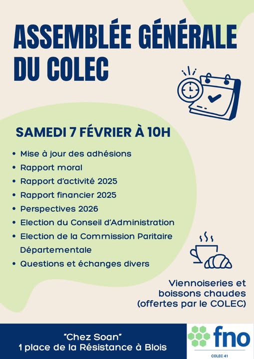 L’équipe du CA du COLEC vous attend nombreuses et nombreux à sa réunion d’Assemblée Générale.