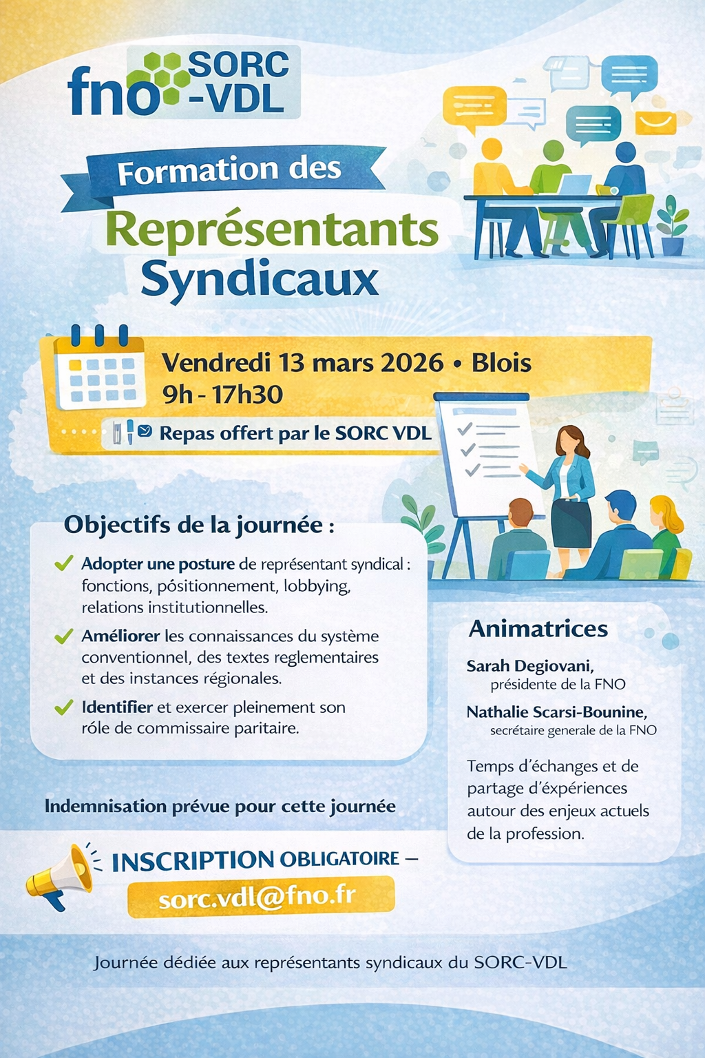 Dans le cadre des orientations nationales et à la demande de la Fédération Nationale des Orthophonistes (FNO), le Syndicat Régional des Orthophonistes de la région Centre Val de Loire (SORC-VDL) organise une journée de formation dédiée aux représentants syndicaux, qui se tiendra, pour rappel  :