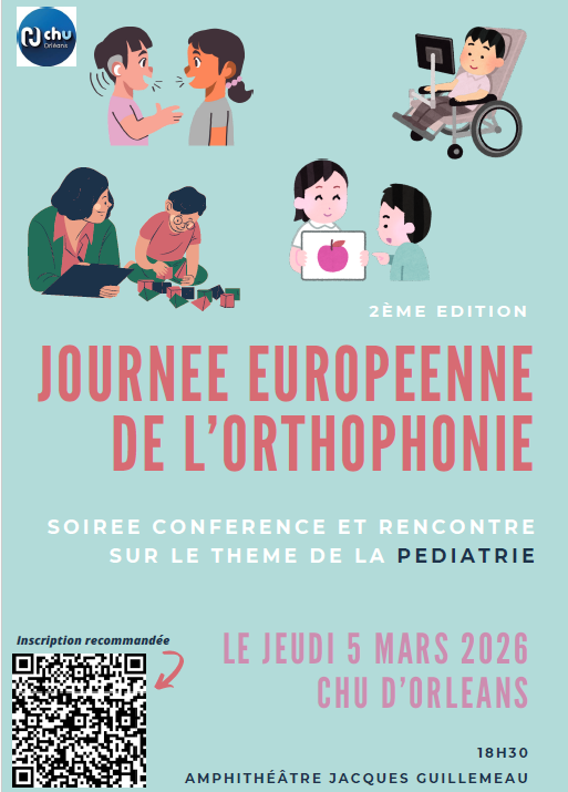 Nous avons le plaisir de vous proposer un nouvel évènement au CHU d’Orléans à l’occasion de la deuxième édition de la Journée Européenne de l’Orthophonie qui aura lieu cette année le jeudi 5 mars 2026.