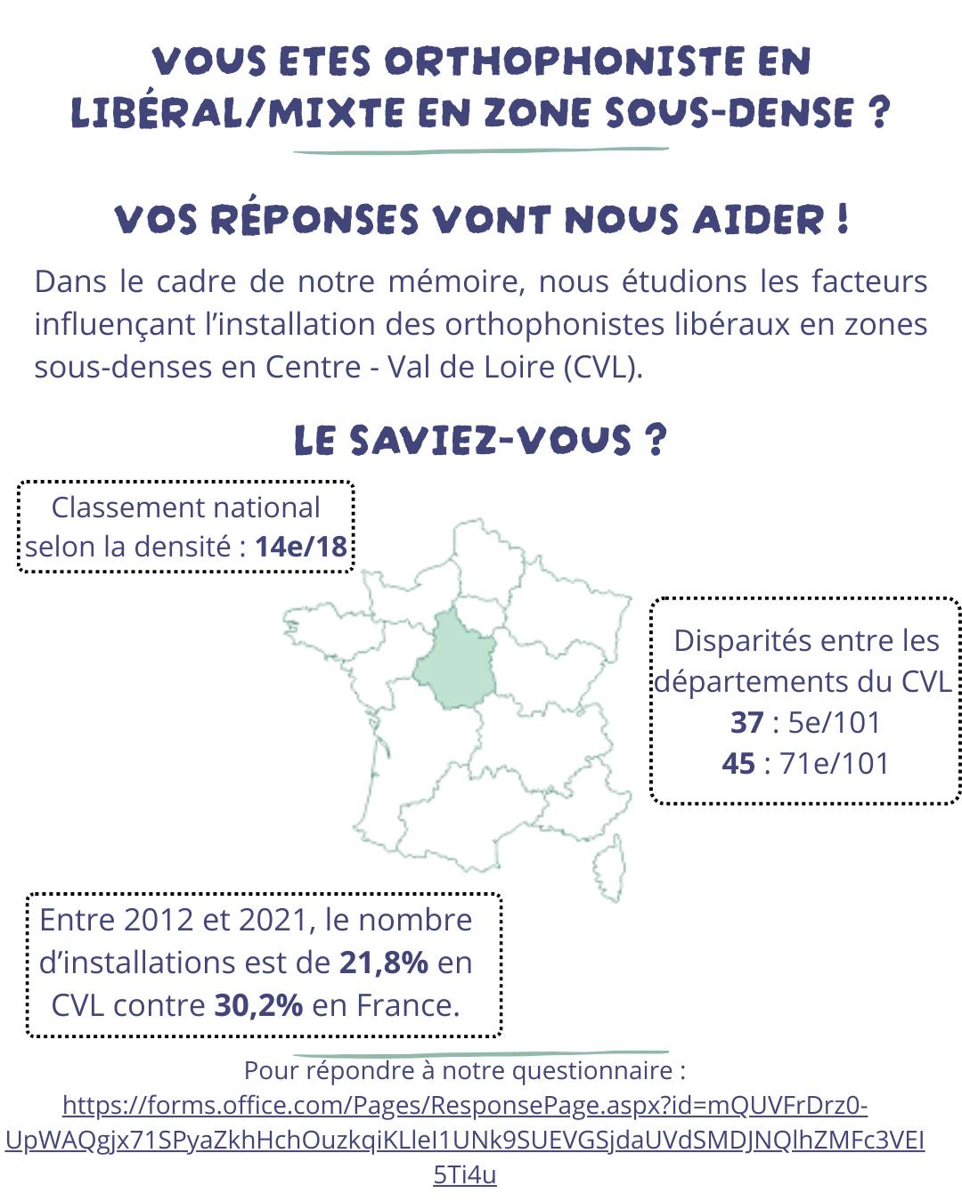 Aidez-nous à déterminer les facteurs d’installation des orthophonistes libéraux en zones sous-denses de la région Centre Val de Loire !