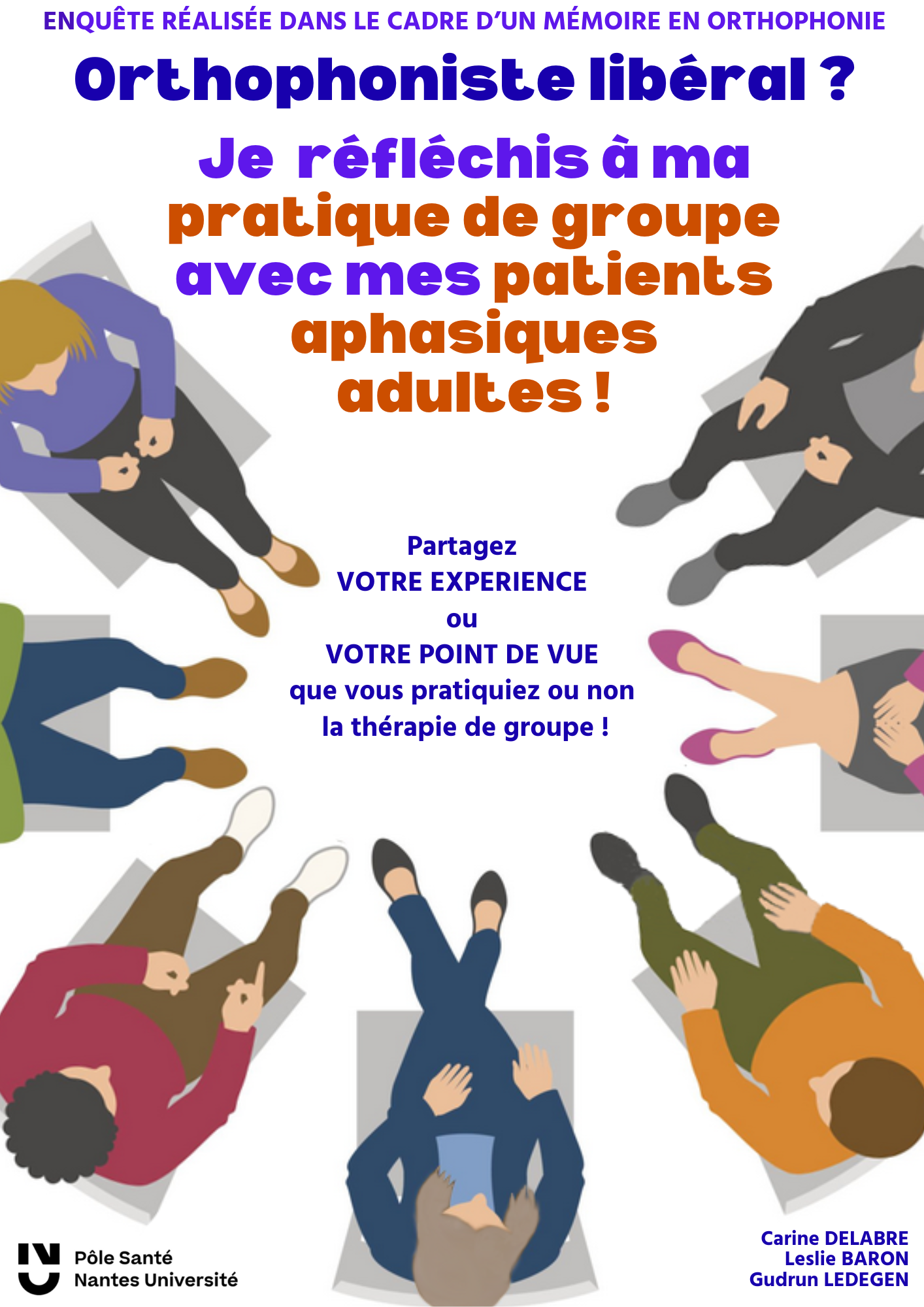 Sous la direction de Leslie BARON, orthophoniste et chargée de cours au CFUO de Nantes, et Gudrun LEDEGEN, Enseignante-chercheure en sociolinguistique et analyse de discours à l’université de Rennes, cette recherche a pour objectif d’analyser les pratiques professionnelles liées à la mise en place de ces groupes thérapeutiques, en recueillant à la fois le retour d’expérience des orthophonistes proposant cette modalité de soin et le point de vue de ceux qui ne la proposent pas.