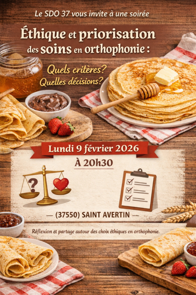 Le Syndicat Départemental des Orthophonistes d’Indre-et-Loire (SDO 37) organise une soirée éthique ouverte aux orthophonistes, le lundi 9 février à 20h30, à Tours.